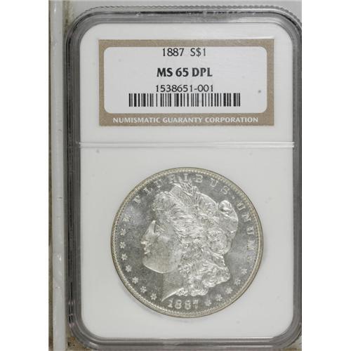 1887 S$1 MS65 Deep Mirror Prooflike NGC. Outstanding b