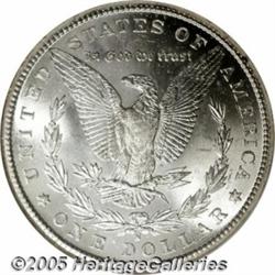 <B>1887-S<img border='0' src='http://www.heritagecoins.com/images/star.gif' width=10 height=10>$1 MS65 NGC.</B></I> A well struck, brilliant, and lustrous Gem with impressively clean surfaces. Although lower Mint State 1887-S Dollars are generally available, Gems are quite scarce. Population: 96 in 65, 6 finer (2/05).