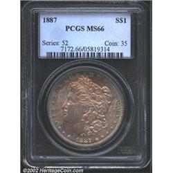 1887 S$1 MS66 PCGS. The obverse has bright orange and powder-blue patina, while the reverse has rich
