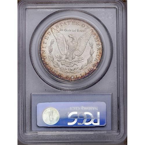 <B>1887<img border='0' src='http://www.heritagecoins.com/images/star.gif' width=10 height=10>$1> MS66 PCGS.</B></I> VAM-12. A Top 100 Variety. The popular "Alligator Eye" variety, although undesignated as such on the PCGS insert. Pleasing tobacco-brown and ruby-red patina throughout the borders frames the nearly untoned fields and devices.