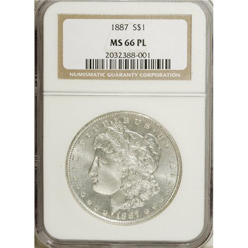 1887 S$1 MS66 Prooflike NGC. Solidly struck with moder