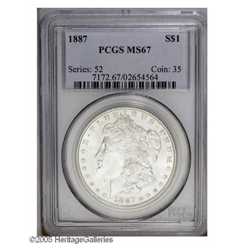 1887 S$1 MS67 PCGS. Brilliant, fully struck, and displ 1887[S$1] MS67 PCGS.