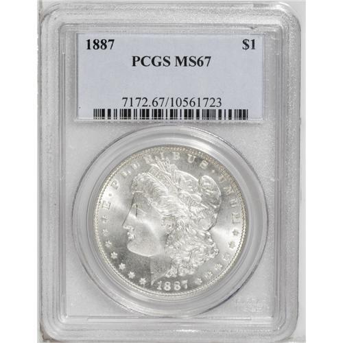 1887 S$1 MS67 PCGS. Frosty and untoned, with swirling