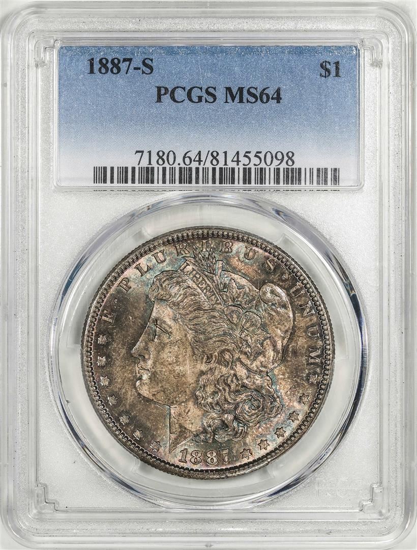 One 1887-S $1 Morgan Silver Dollar Coin PCGS MS64 Nice Toning. PCGS Graded.