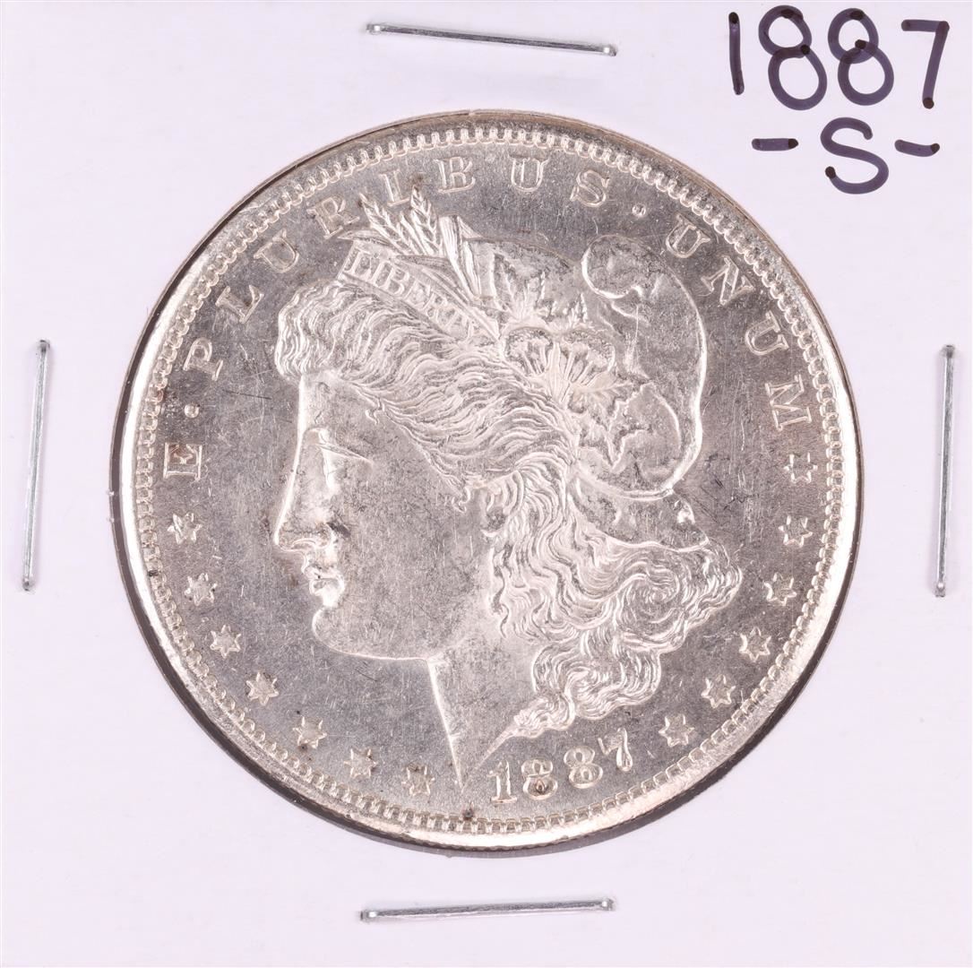 One 1887-S $1 Morgan Silver Dollar Coin.