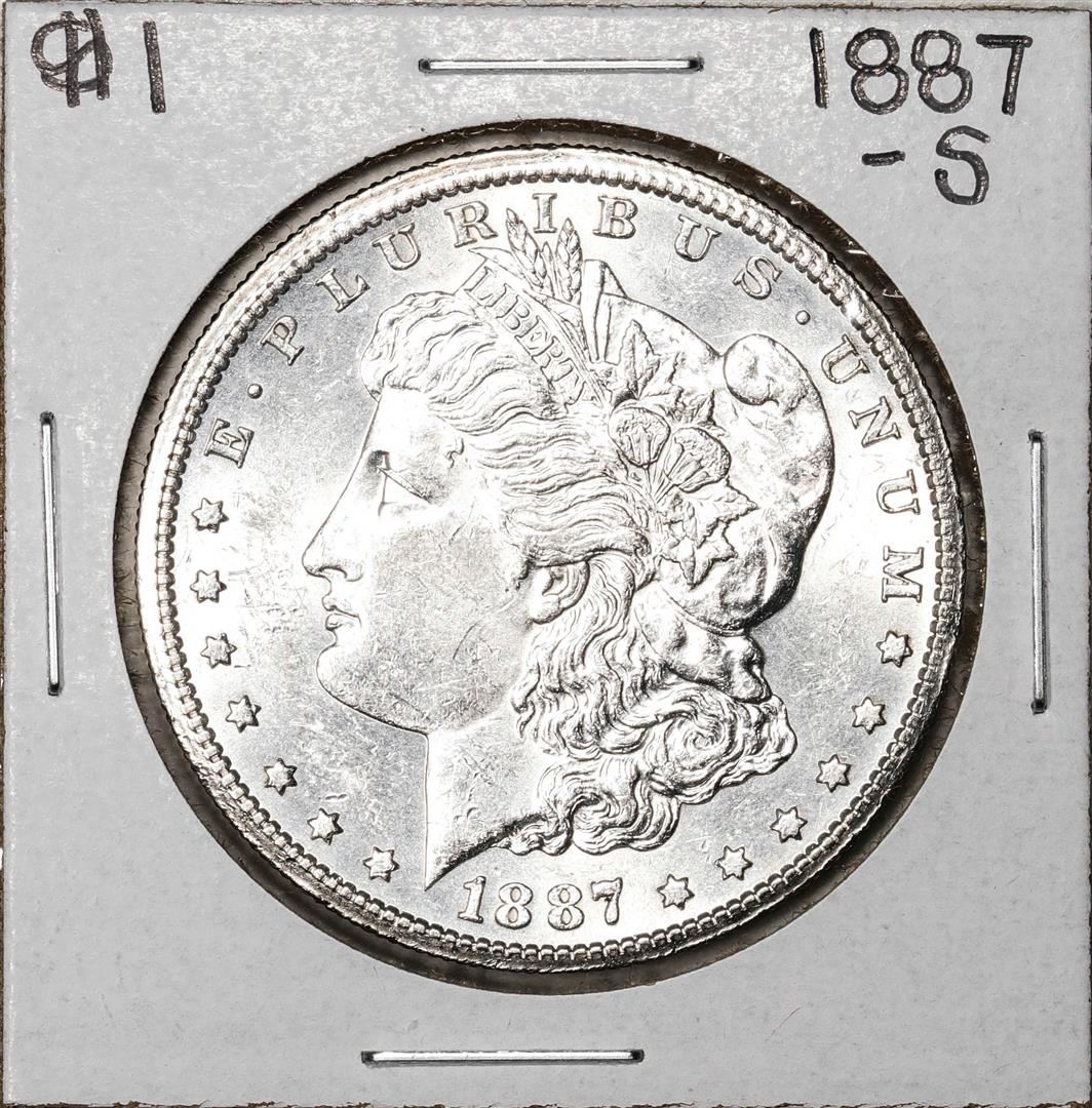 One 1887-S $1 Morgan Silver Dollar Coin.