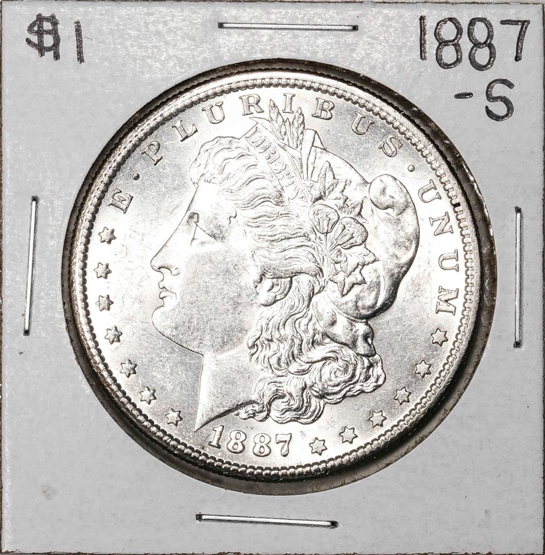 One 1887-S $1 Morgan Silver Dollar Coin.