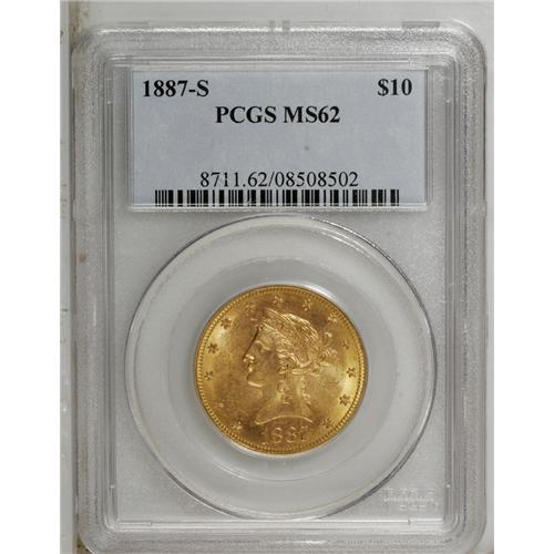1887-S $10 MS62 PCGS. The solidly struck devices are c