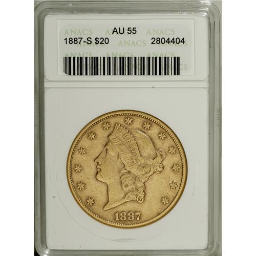 1887-S $20 AU55 ANACS. NGC Census: (15/644). PCGS