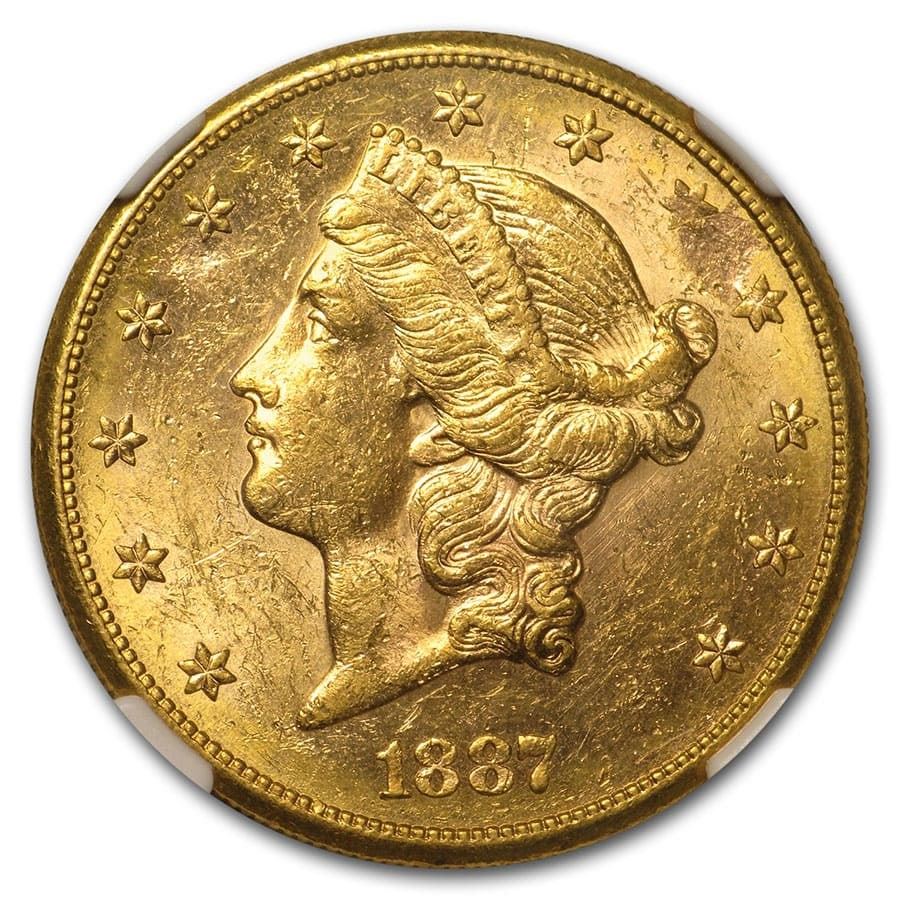 1887-S $20 Liberty Gold Double Eagle MS-61 NGC (Mint Error)