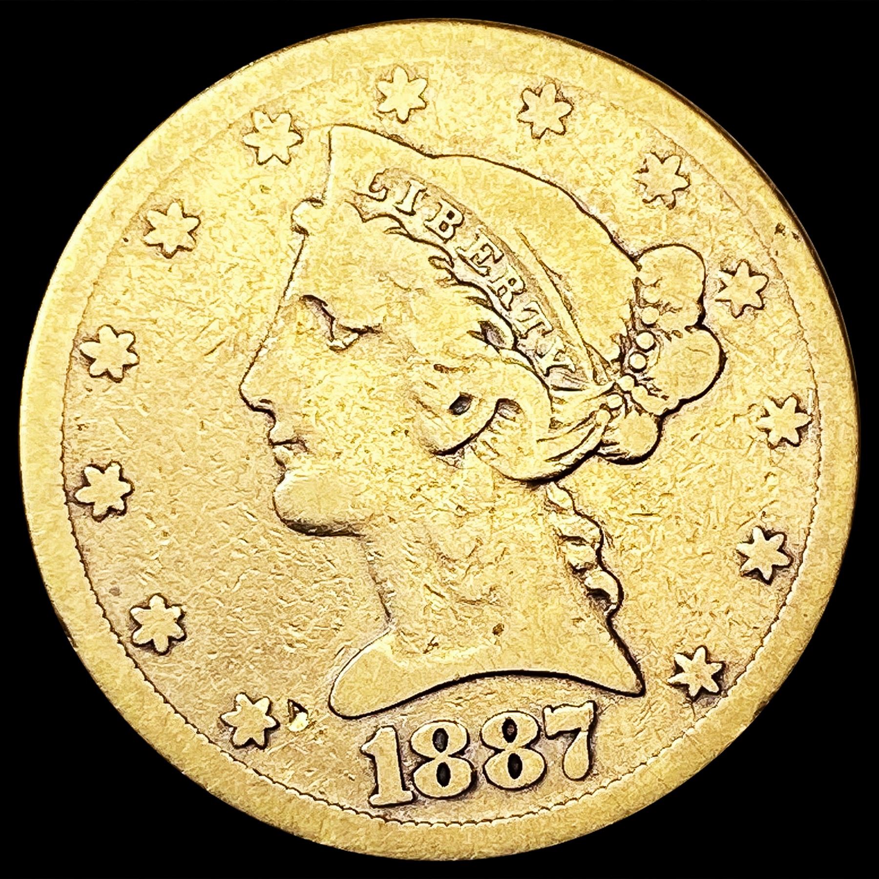 1887-S $5 Gold Half Eagle NICELY CIRCULATED
