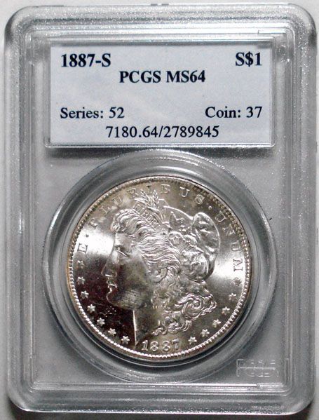 1887-S Morgan Silver Dollar graded PCGS MS64 ESTIMATE $650 - $725. Silvertowne Auctions has a top ranking on proxiblog.org.