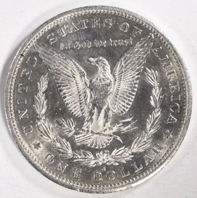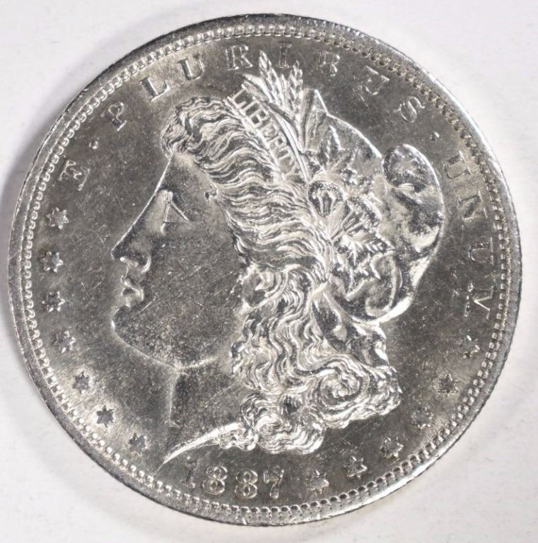 1887-S MORGAN SILVER DOLLAR, BU ESTIMATE $125 - $150.