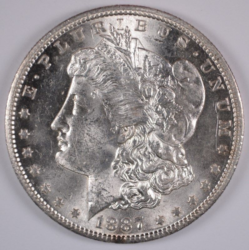 1887-S MORGAN SILVER DOLLAR, MS-64+ BLAST WHITE, ALMOST PL! NICE!!