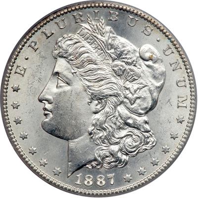 1887-S Morgan Dollar. PCGS graded MS-64. A primarily untoned example. There are moments when anything is possible to a bidder, and the purchase of this handsome brilliant Uncirculated 1887-S silver dollar should be one of those! (PCGS # 7180).