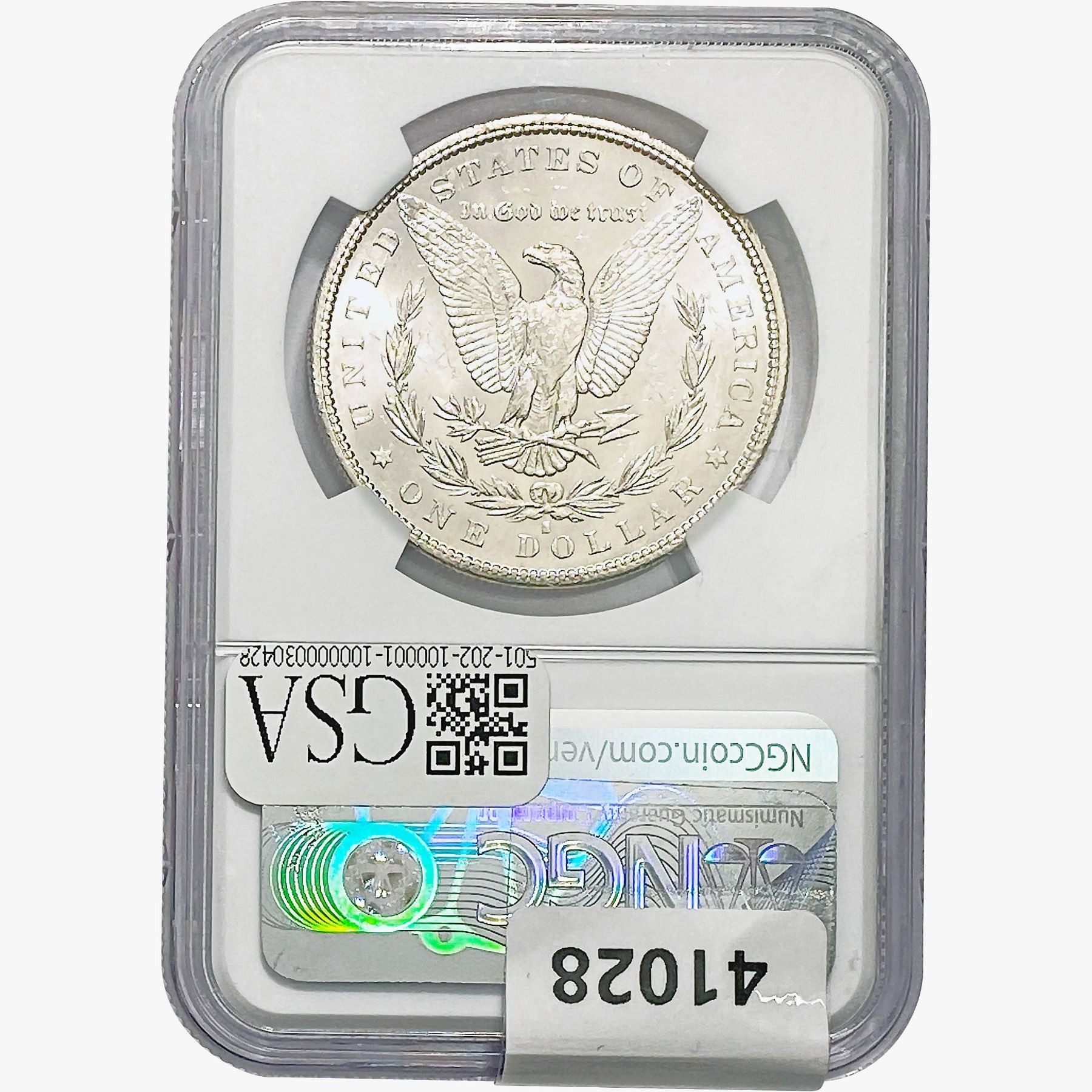 e. Coins sold referencing a third-party grading service are sold “AS IS” without any express or implied warranty, except for a guarantee by GSA that they are genuine. Removal or alteration of the holder, voids all of Bidder’s claims concerning that Product. Certain warranties may be available from the grading services and Bidders are referred to them for further details: Numismatic Guaranty Corporation (NGC), PO Box 4776, Sarasota, FL 34230, www.ngccoin.com/services/writtenguarantee.asp; Professional Coin Grading Services (PCGS), PO Box 9458, Newport Beach, CA 92658, www.pcgs.com/guarantee.html; ANACS, 6555 S. Kenton St., Ste. 303, Englewood, CO 80111; and Independent Coin Grading Co. (ICG), 7901 East Bellview, Ave., Suite 50, Englewood, CO 80111.