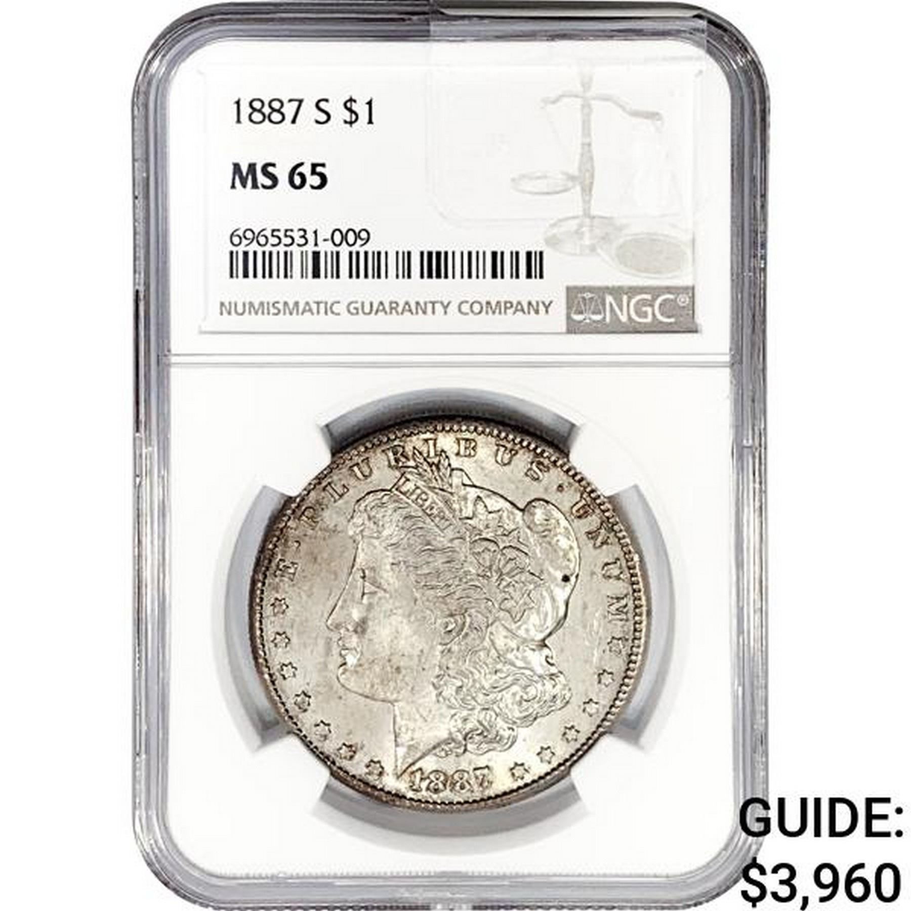1887-S Morgan Silver Dollar NGC MS65
