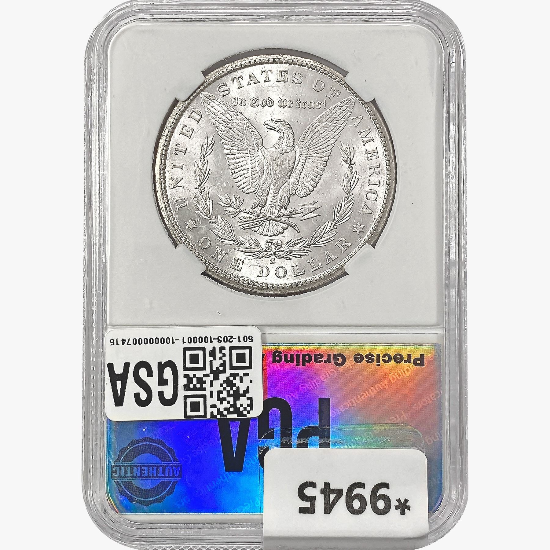 COINS AND CURRENCY LISTED IN GSA’S CATALOG AS GRADED AND ENCAPSULATED BY PCGS, NGC, ANACS, ICG, PCGS CURRENCY, PMG, PCGS BANKNOTE GRADING, CMC OR ANY OTHER THIRD-PARTY GRADING SERVICE ARE LIKEWISE SOLD “AS-IS” EXCEPT AS EXPRESSLY SET FORTH HEREIN. ALL THIRD-PARTY GRADING SERVICE GUARANTEES, INCLUDING AUTHENTICITY, ARE THE SOLE RESPONSIBILITY OF THE THIRD-PARTY GRADING SERVICE AND NOT WARRANTIES OR GUARANTEES OF GSA. BIDDERS SHOULD CONTACT THESE THIRD-PARTY GRADING SERVICES DIRECTLY WITH RESPECT TO ANY CLAIMS OR QUESTIONS THEY MAY HAVE CONCERNING THEIR GUARANTEES AND WARRANTIES. BIDDERS ACKNOWLEDGE AND AGREE THAT AUCTIONEER IS NOT BOUND BY OR LIABLE FOR ANY OPINION OR CERTIFICATION BY ANY THIRD-PARTY GRADING SERVICE. REMOVAL OF A PRODUCT FROM ITS PROTECTIVE CASING OR HOLDER OR ALTERATION OF ANY COIN HOLDER WAIVES ALL RIGHTS CONCERNING THE PRODUCT CONTAINED THEREIN.