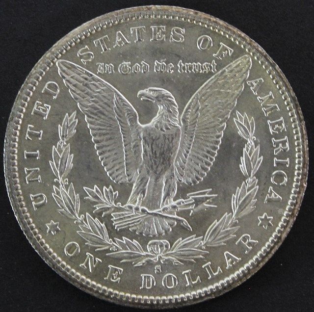 1887 S Morgan silver dollar.
