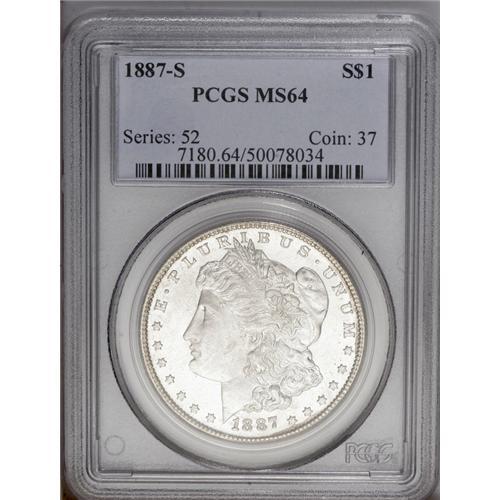 1887-S S$1 MS64 PCGS. Lustrous and flashy, with numero