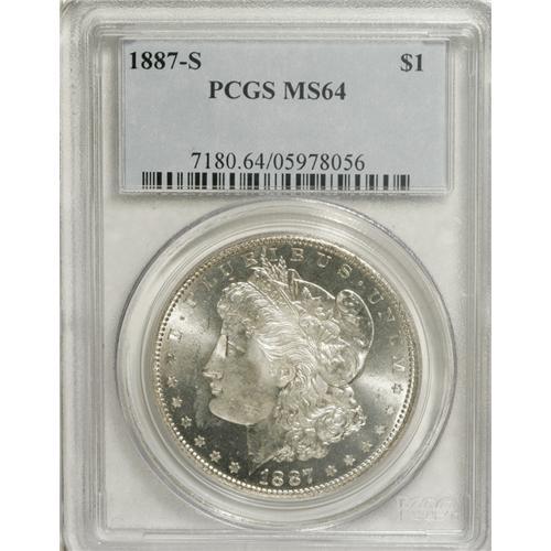 1887-S S$1 MS64 PCGS. Solidly struck with strong luste
