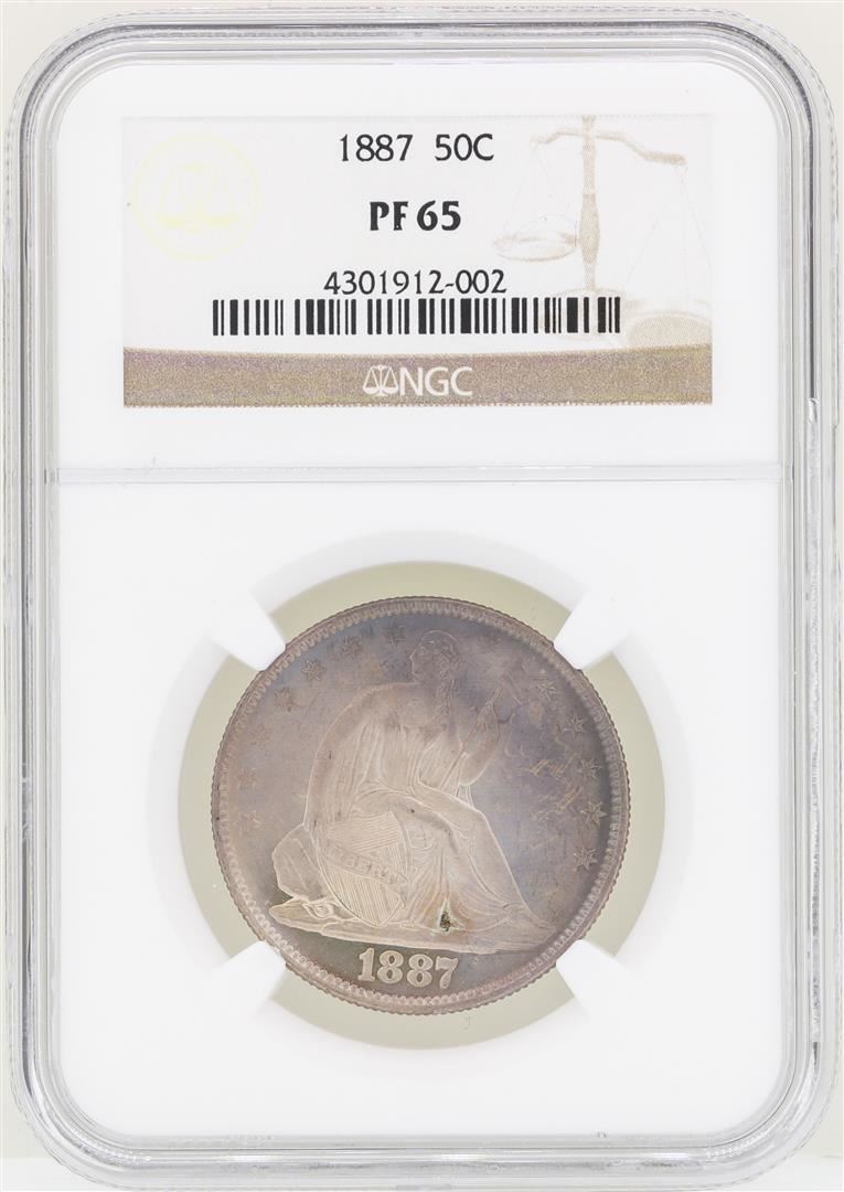 One 1887 Seated Liberty Half Dollar Coin NGC PF65. NGC Certified.