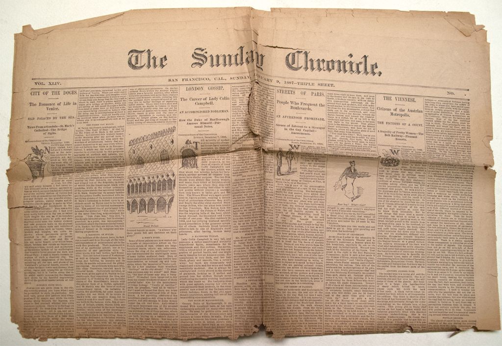 January 9th triple sheet. List of businesses that incorporated in 1886. In fragile condition.