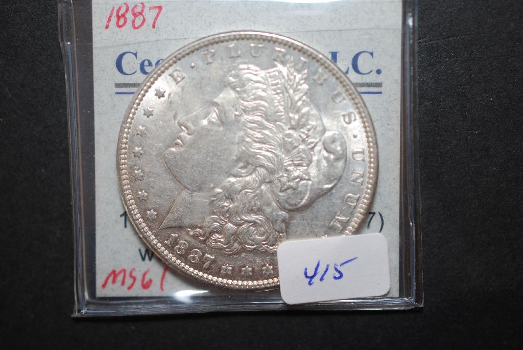 1887 US Silver Morgan $1; MS61; EST. $50-60
