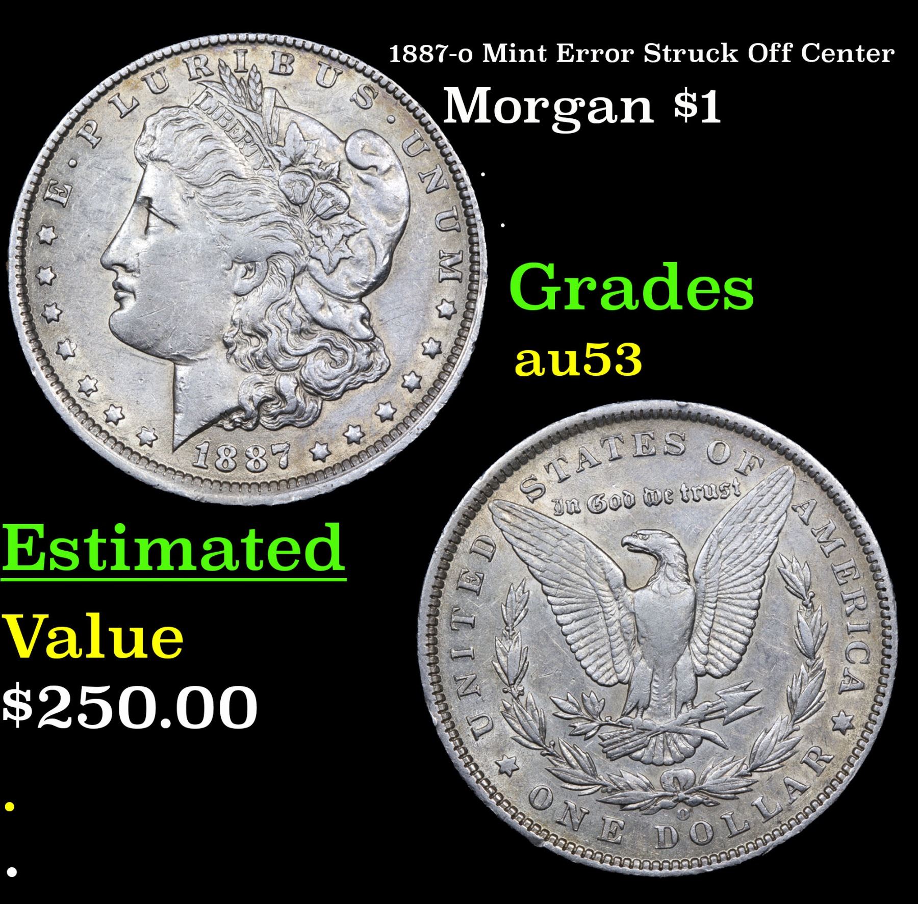 1887-o Mint Error Struck Off Center . . Morgan Dollar $1 Grades Select AU.