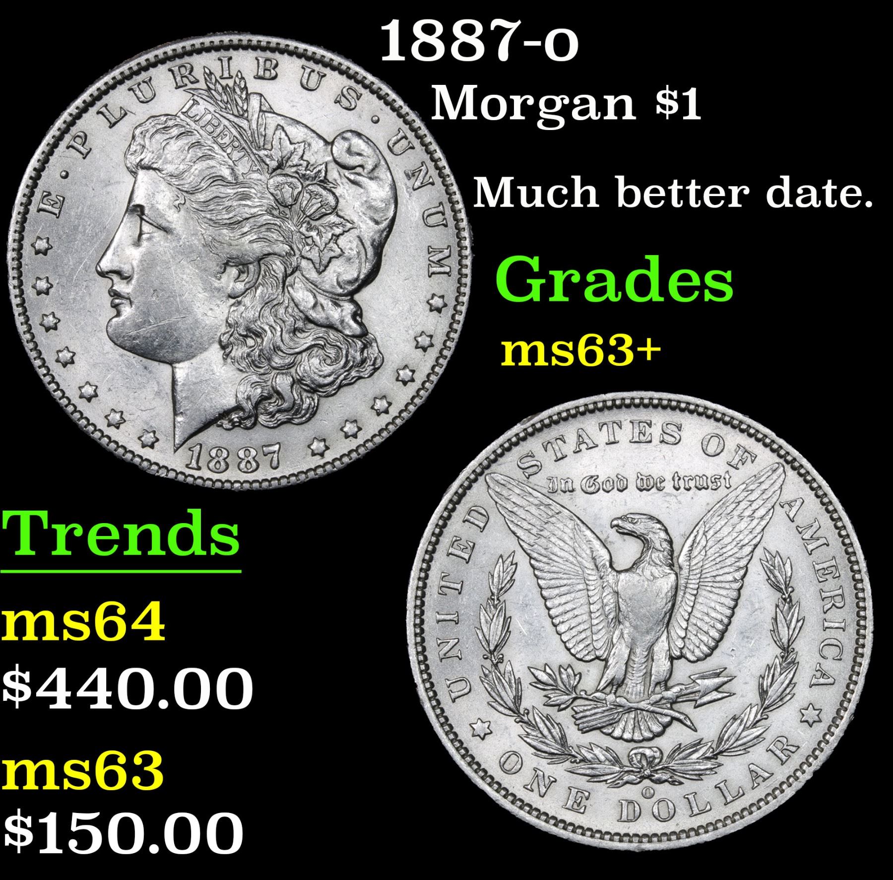 1887-o Morgan Dollar $1 Grades Select+ Unc. Much better date.