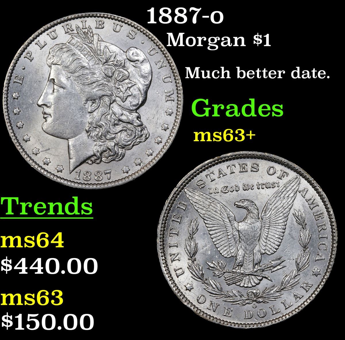 1887-o Much better date. . Morgan Dollar $1 Grades Select+ Unc.