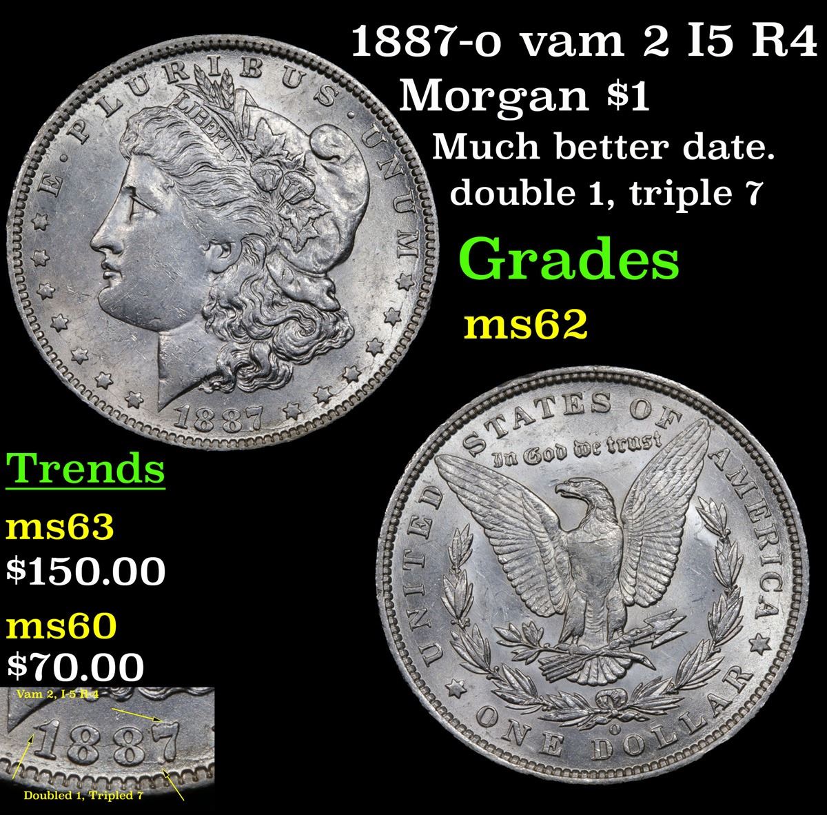 1887-o vam 2 I5 R4 Morgan Dollar $1 Grades Select Unc.
