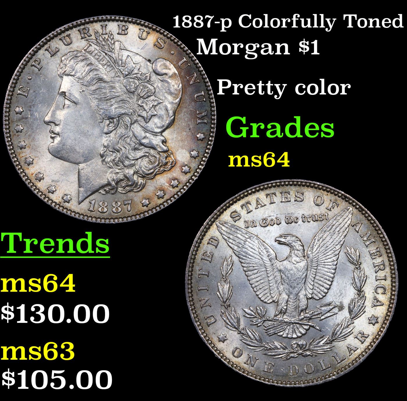 1887-p Colorfully Toned Morgan Dollar $1 Grades Choice Unc.