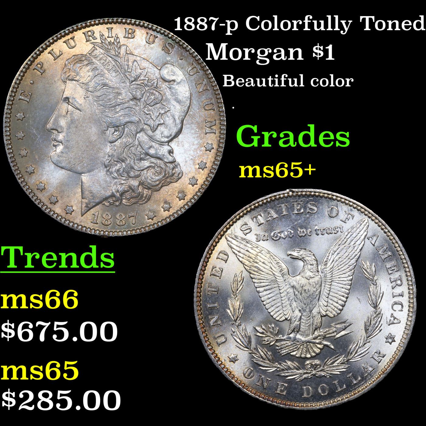 1887-p Colorfully Toned Morgan Dollar $1 Grades GEM+ Unc.