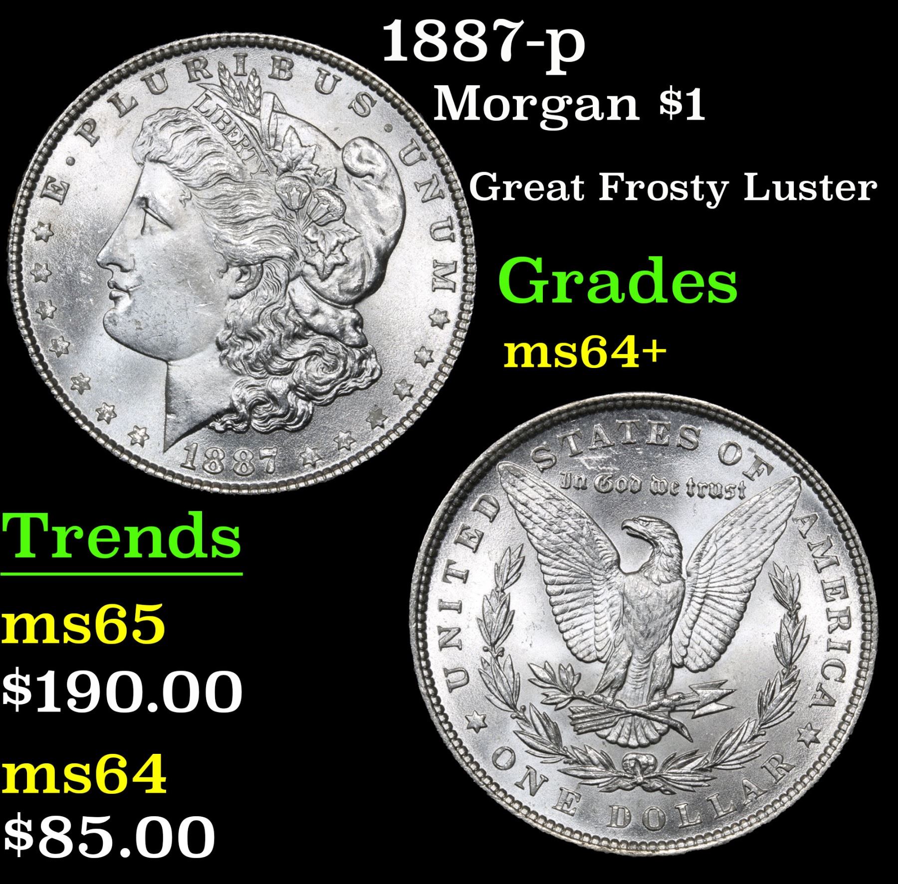 1887-p Great Frosty Luster . Morgan Dollar $1 Grades Choice+ Unc.