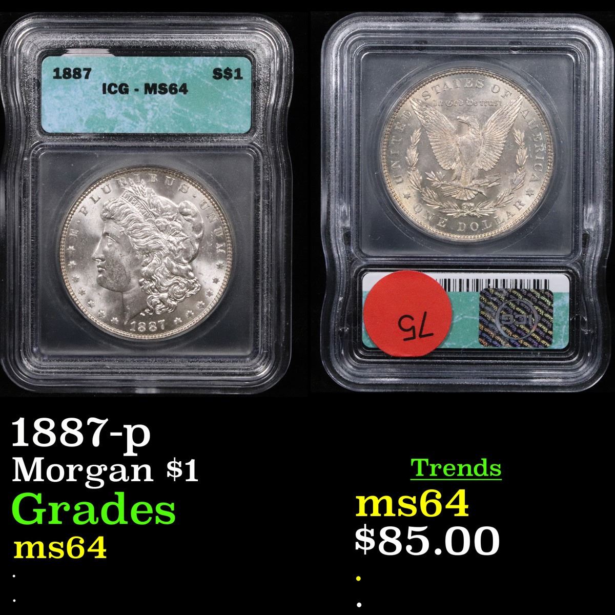 1887-p . . Morgan Dollar $1 Graded ms64 By ICG.
