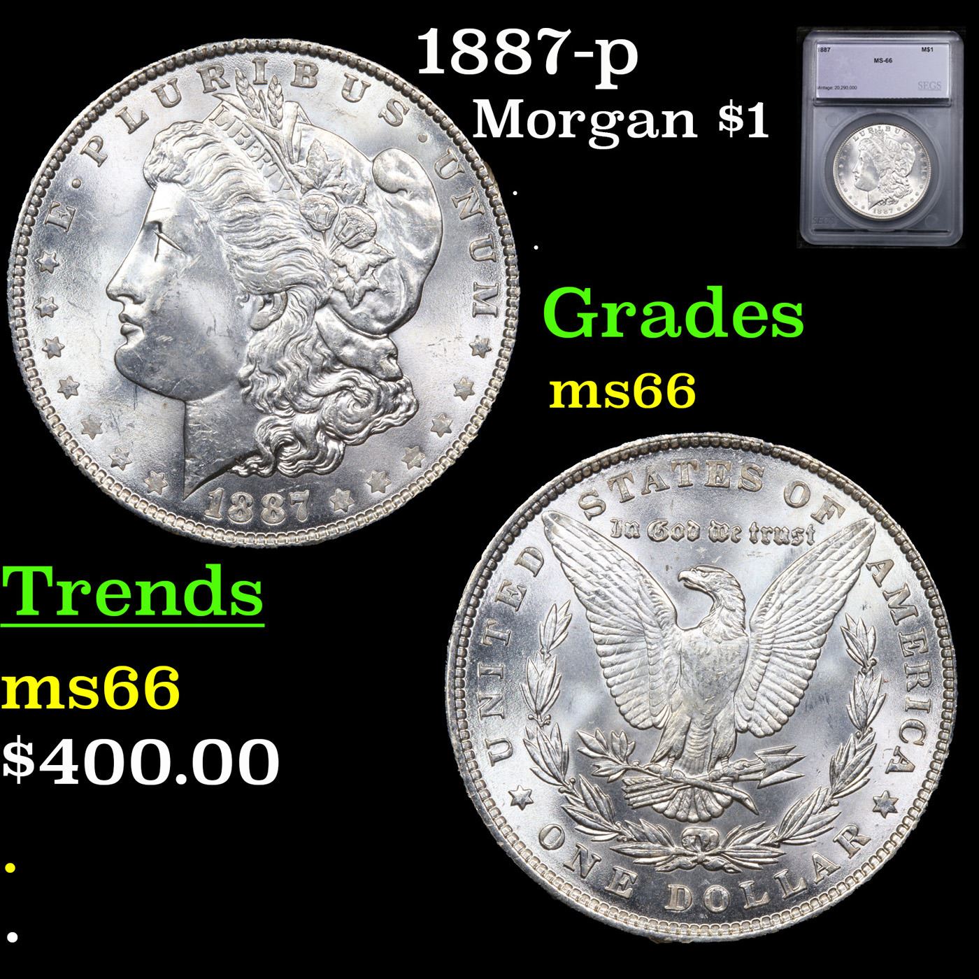 1887-p Morgan Dollar $1 Graded ms66 BY SEGS.