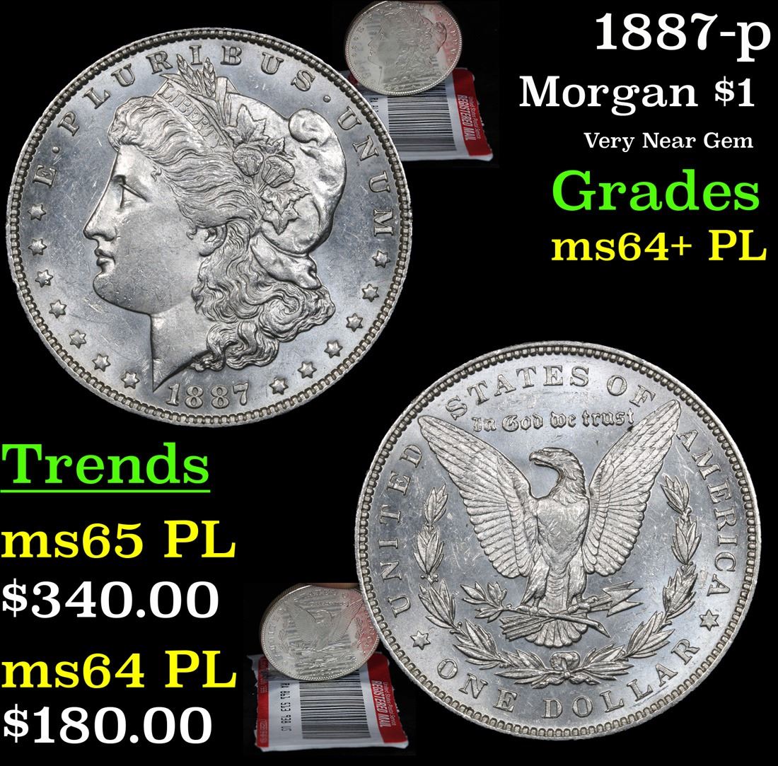1887-p . Very Near Gem Morgan Dollar $1 Grades Choice Unc+ PL.