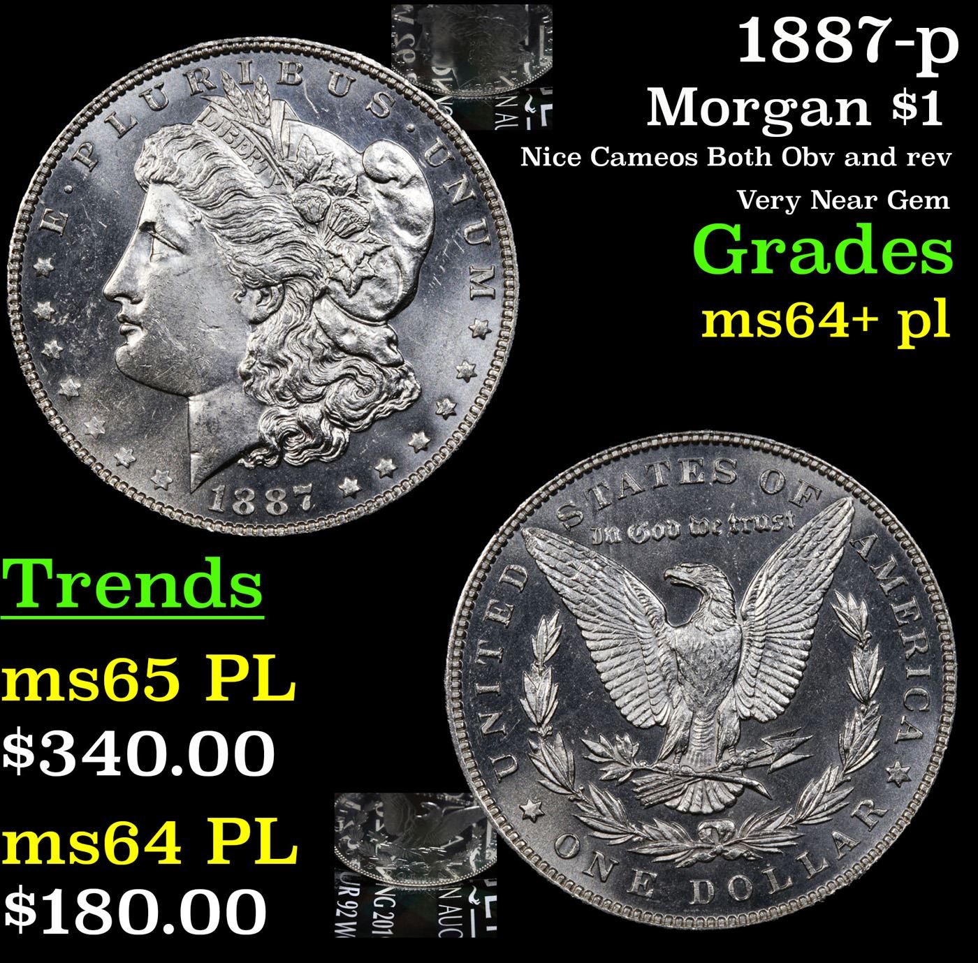 1887-p Morgan Dollar $1 Grades Choice Unc+ PL.