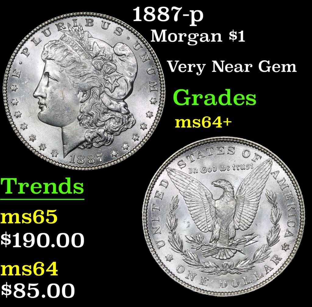 1887-p . Very Near Gem Morgan Dollar $1 Grades Choice+ Unc.
