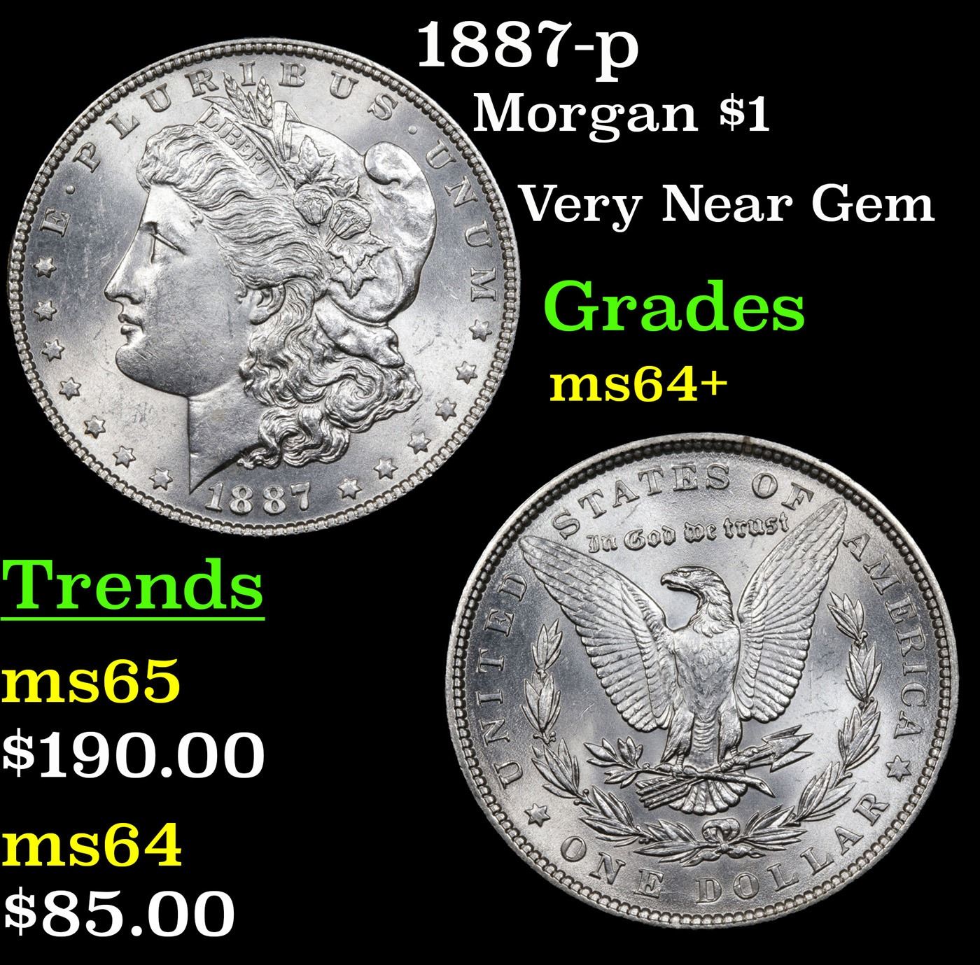 1887-p Morgan Dollar $1 Grades Choice+ Unc.