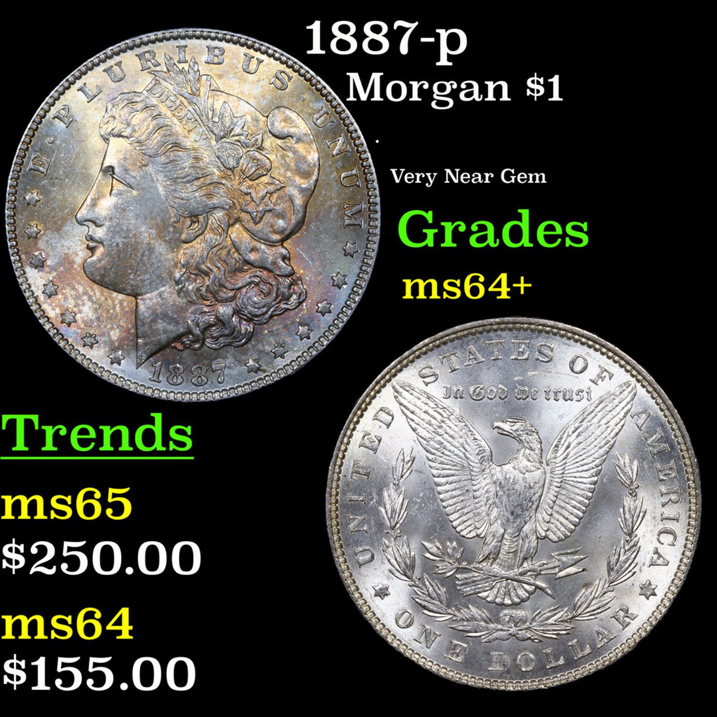 1887-p Morgan Dollar $1 Grades Choice+ Unc.