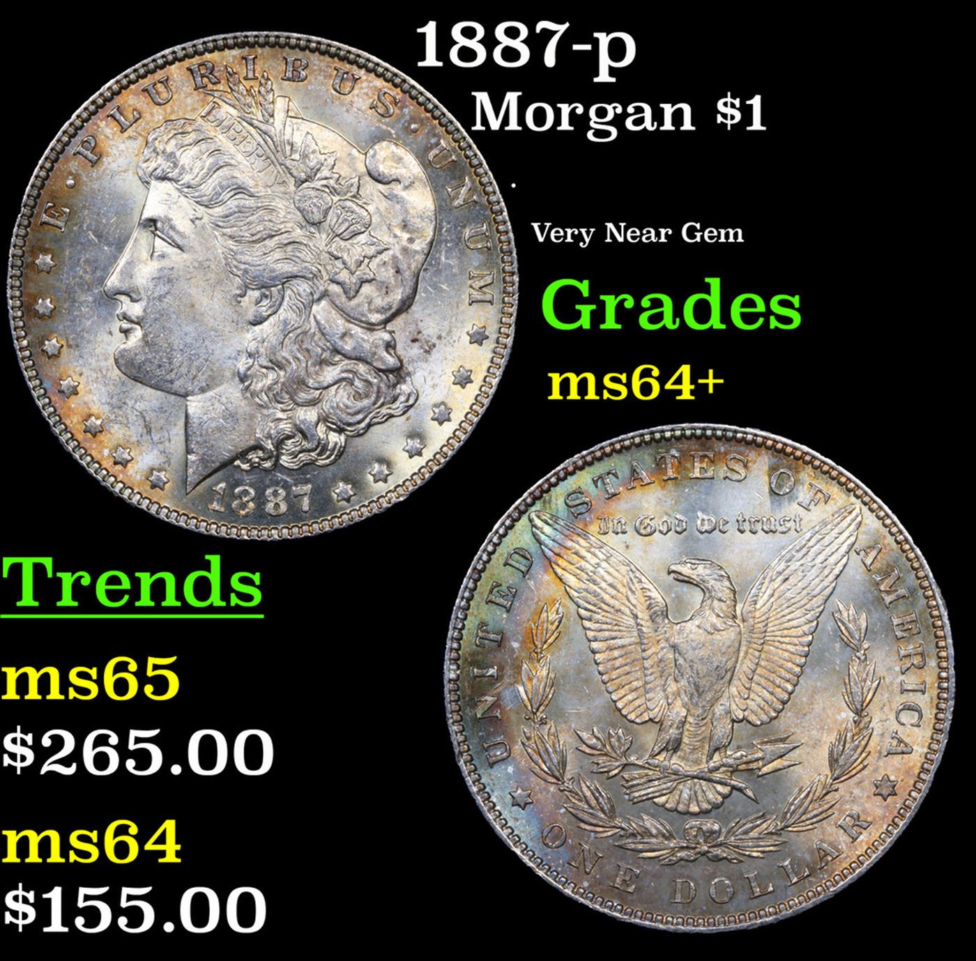 1887-p Morgan Dollar $1 Grades Choice+ Unc.