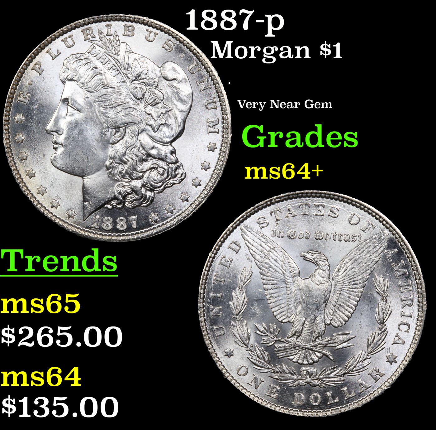 1887-p Morgan Dollar $1 Grades Choice+ Unc.