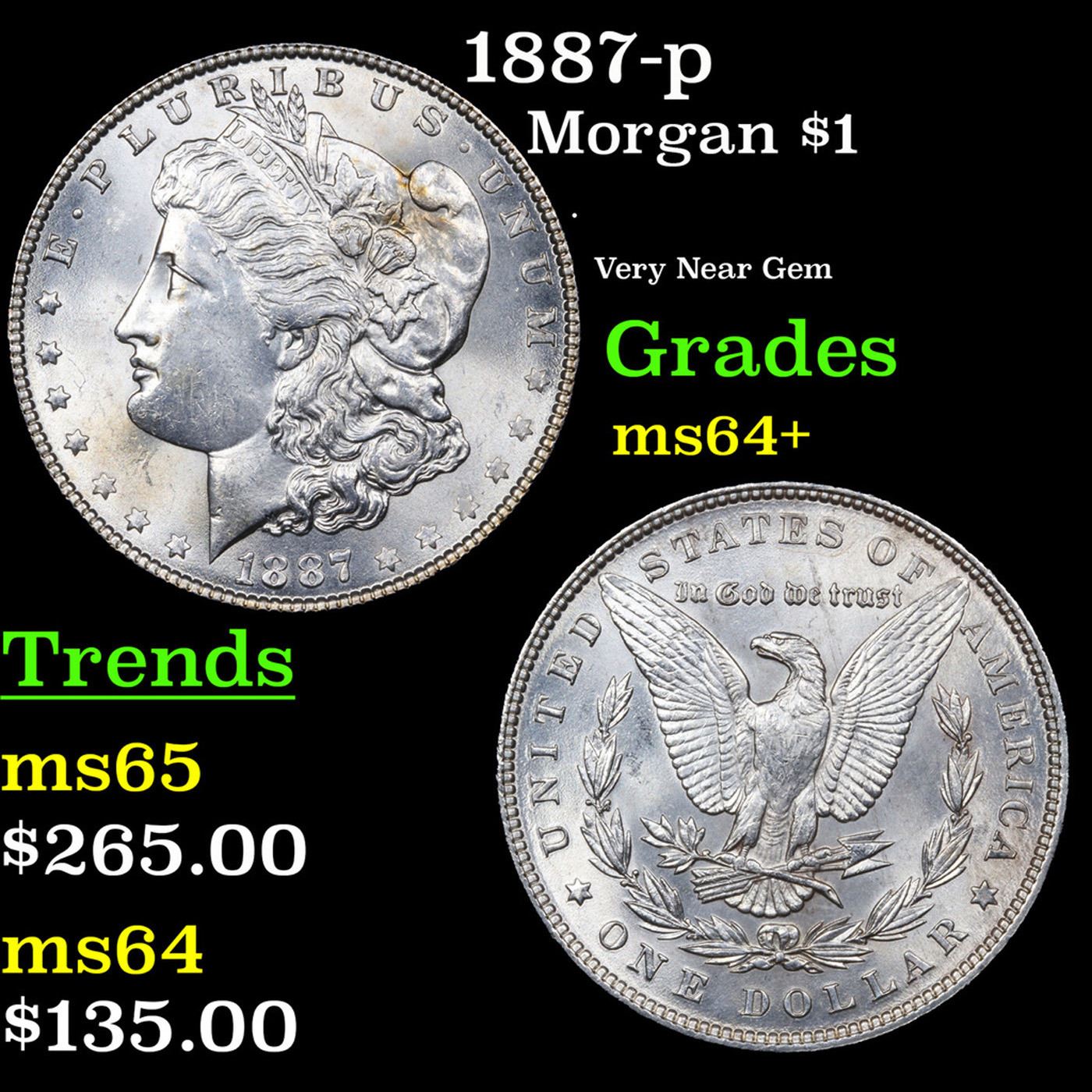 1887-p Morgan Dollar $1 Grades Choice+ Unc.