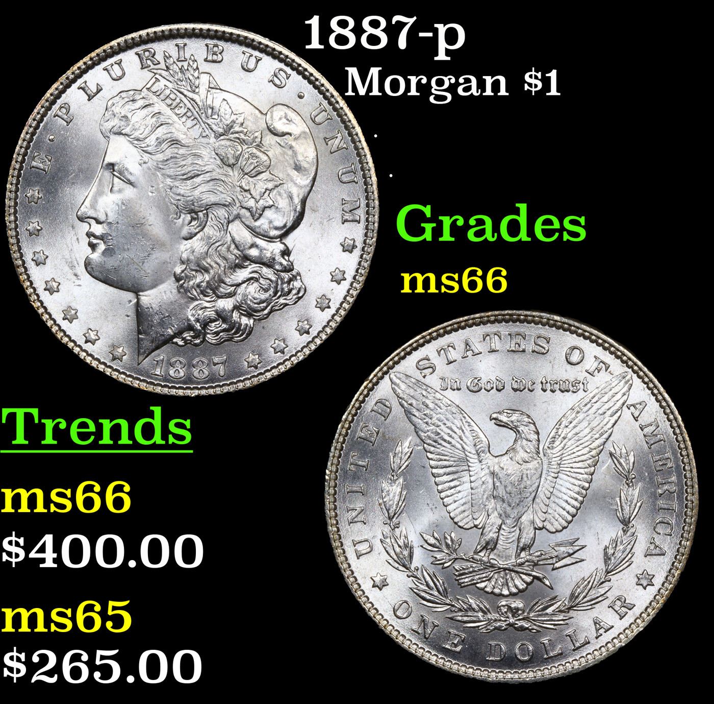1887-p Morgan Dollar $1 Grades GEM+ Unc.