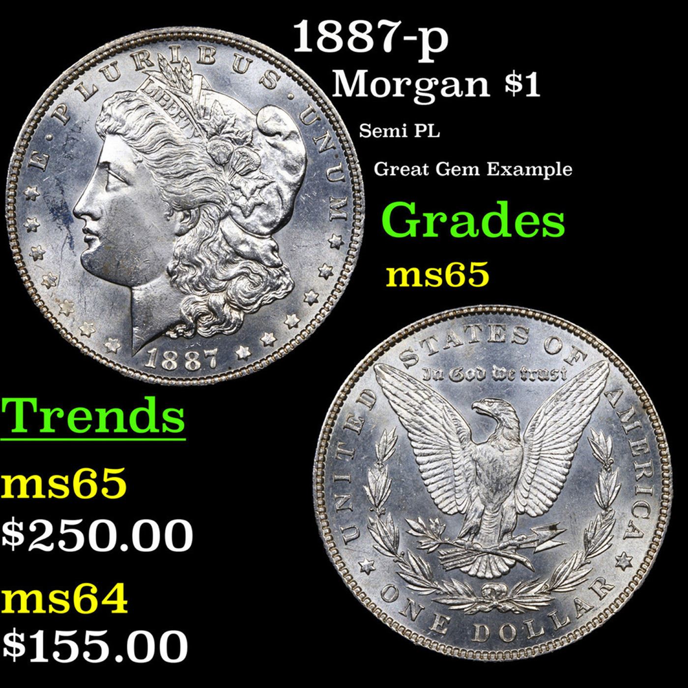 1887-p Morgan Dollar $1 Grades GEM Unc.