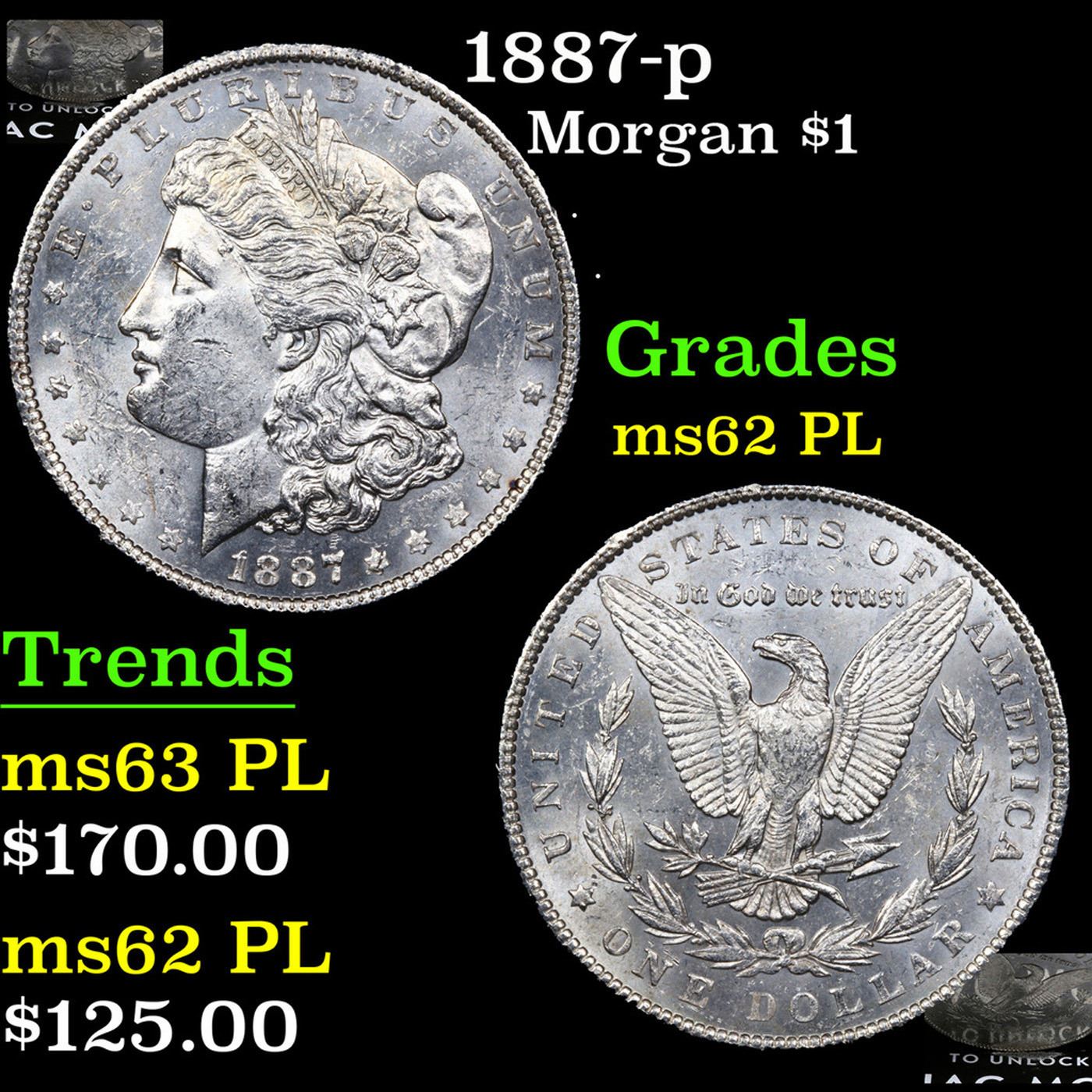 1887-p Morgan Dollar $1 Grades Select Unc PL.