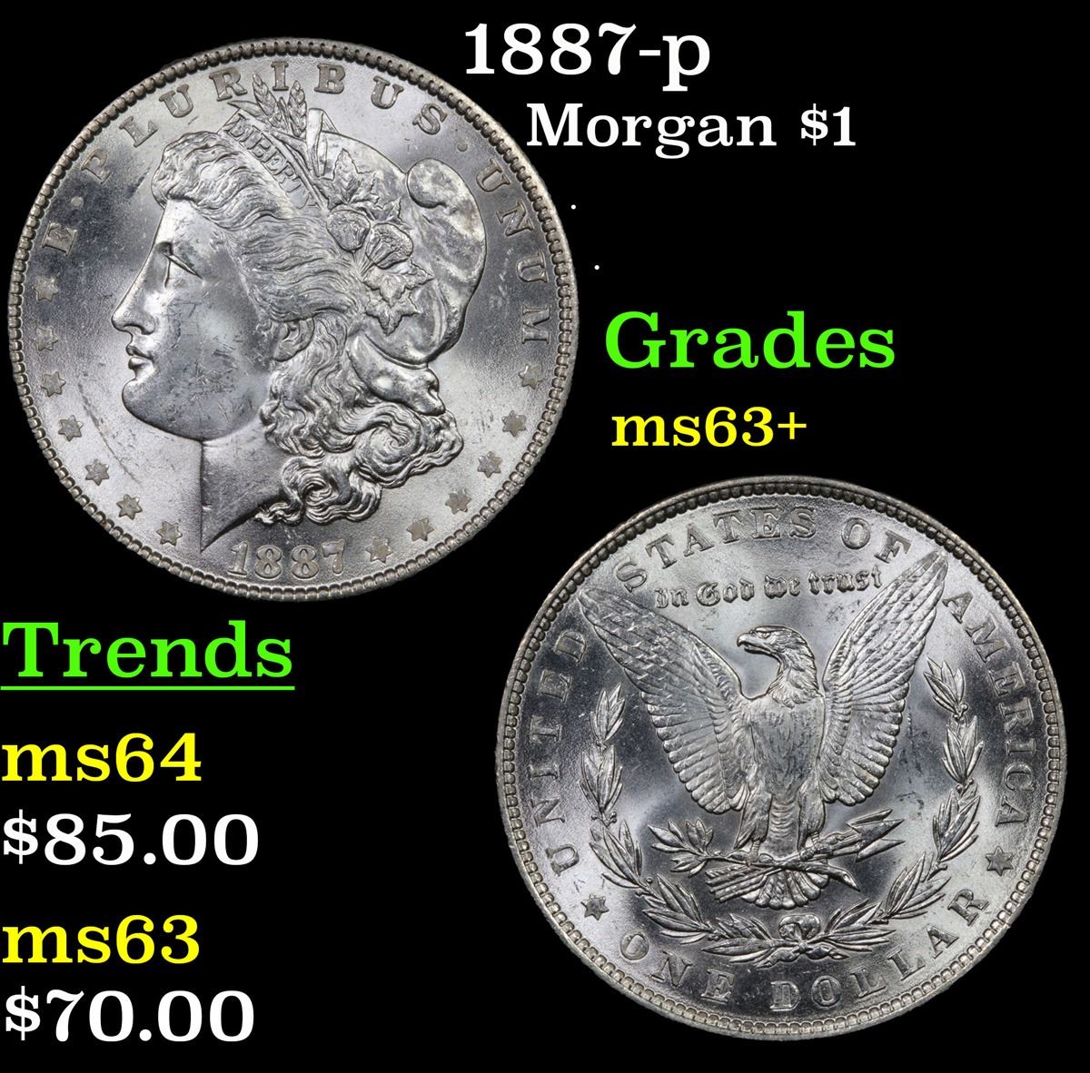 1887-p Morgan Dollar $1 Grades Select+ Unc.