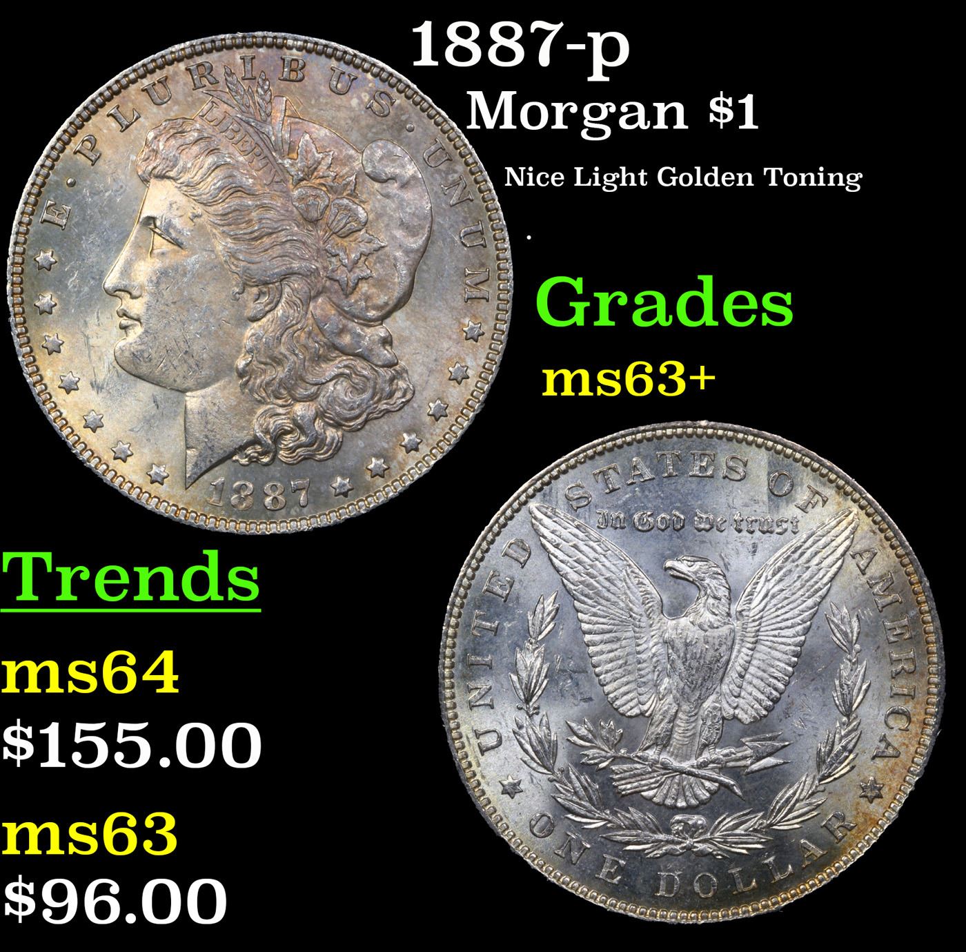 1887-p Morgan Dollar $1 Grades Select+ Unc.
